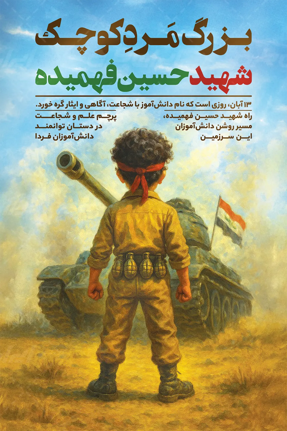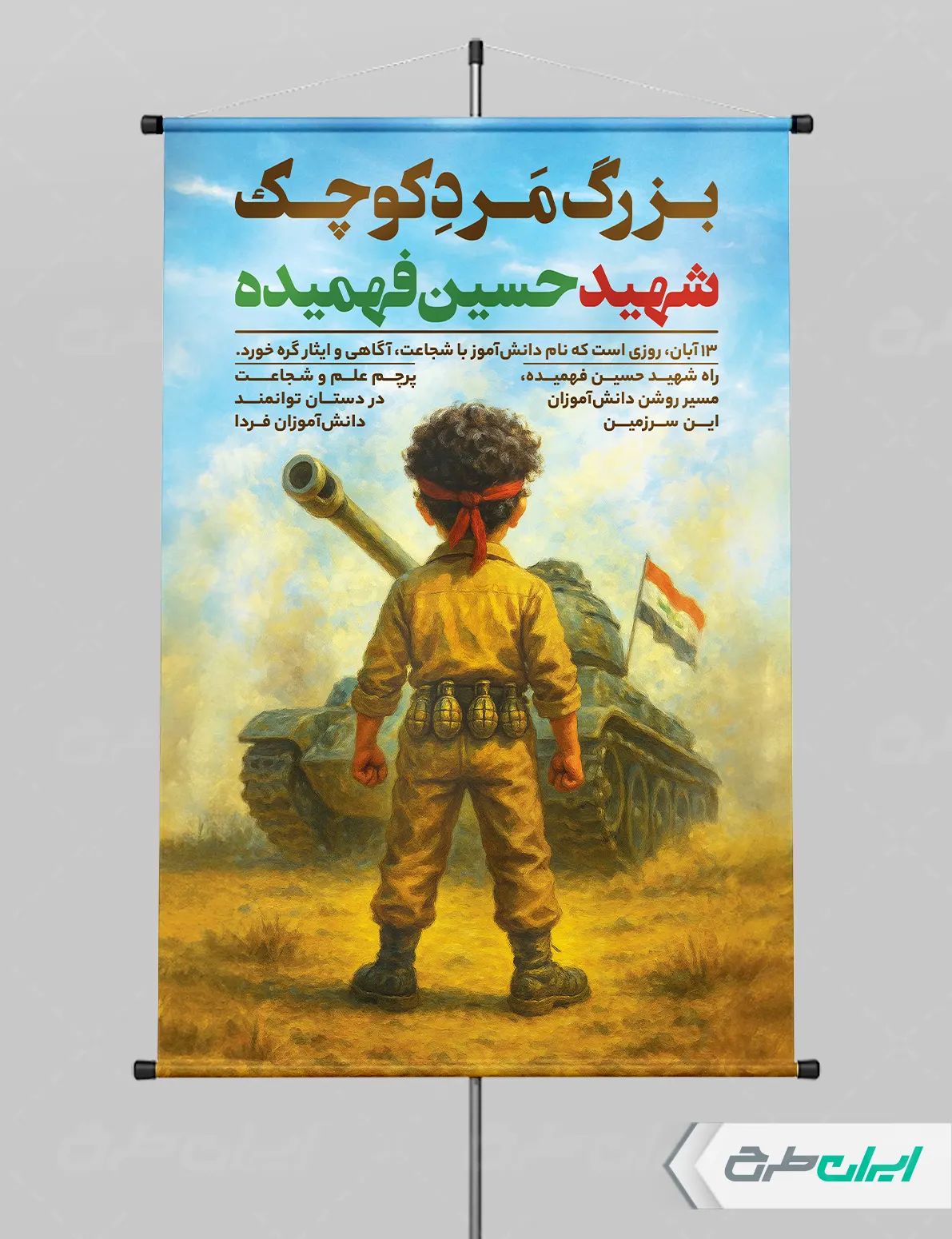 تصویر تانک و شهید فهمیده و متن مرتبط با روز مبارزه با استکبار جهانی می باشد که توسط تیم ایران طرح طراحی شده است.
