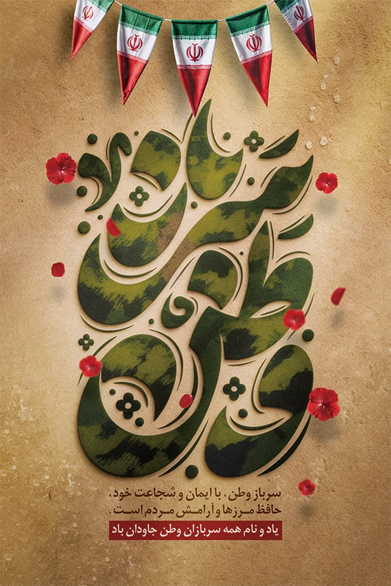 تایپوگرافی سرباز وطن، تصویر سرباز و متن تبریک روز سرباز می باشد که توسط تیم ایران طرح طراحی شده است.