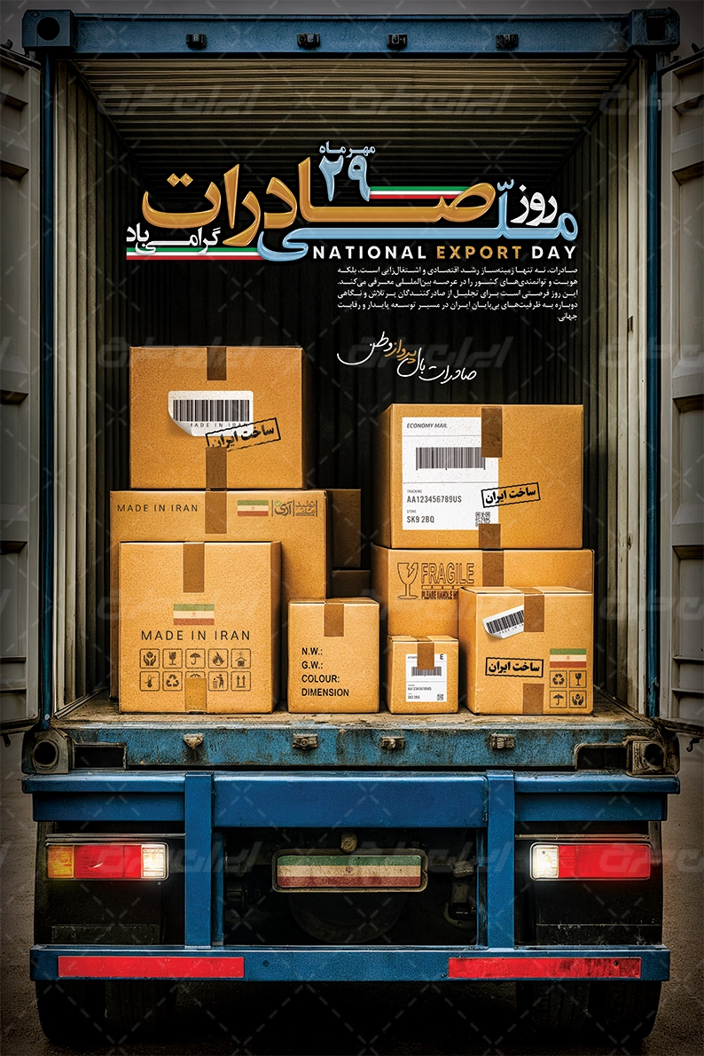 طرح بنر لایه باز روز ملی صادرات، توسط تیم با تجربه ایران طرح جهت استفاده کاربران سایت طراحی و به صورت لایه باز در دسترس کاربران قرار گرفته است.