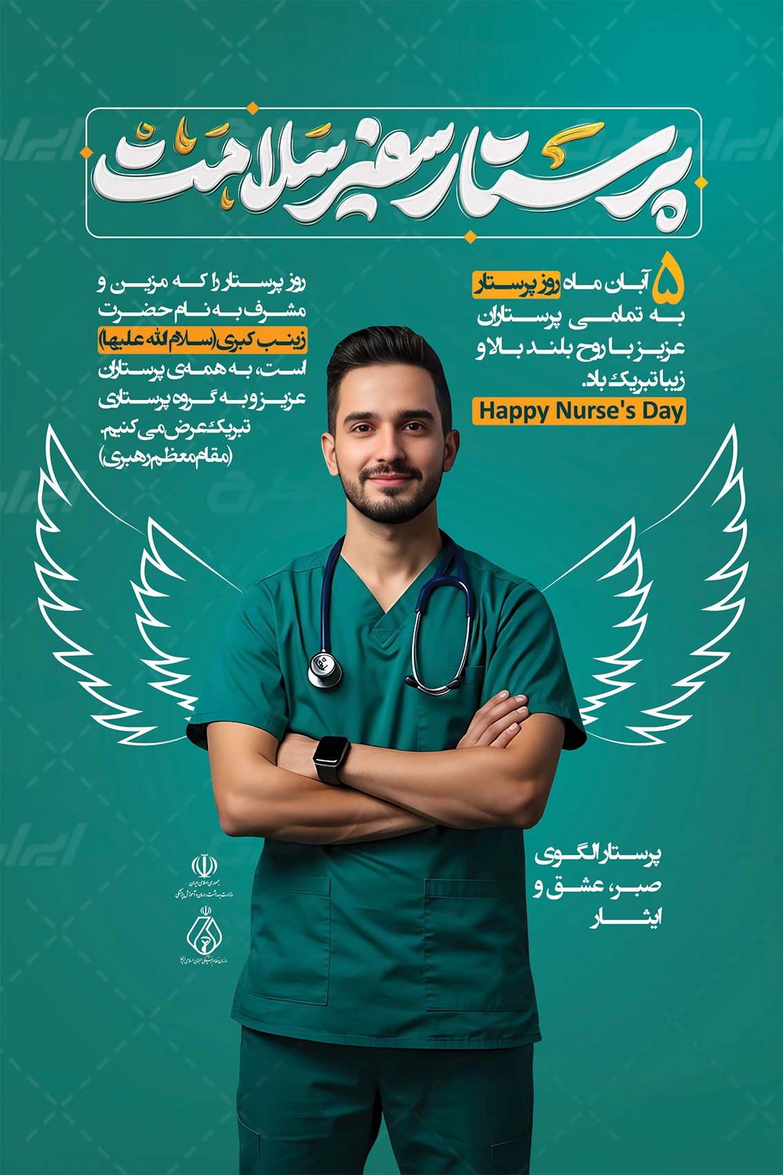 تایپوگرافی پرستار سفیر سلامت، تصویر پرستار و متن گرامیداشت روز پرستار می باشد که توسط تیم ایران طرح طراحی شده است.