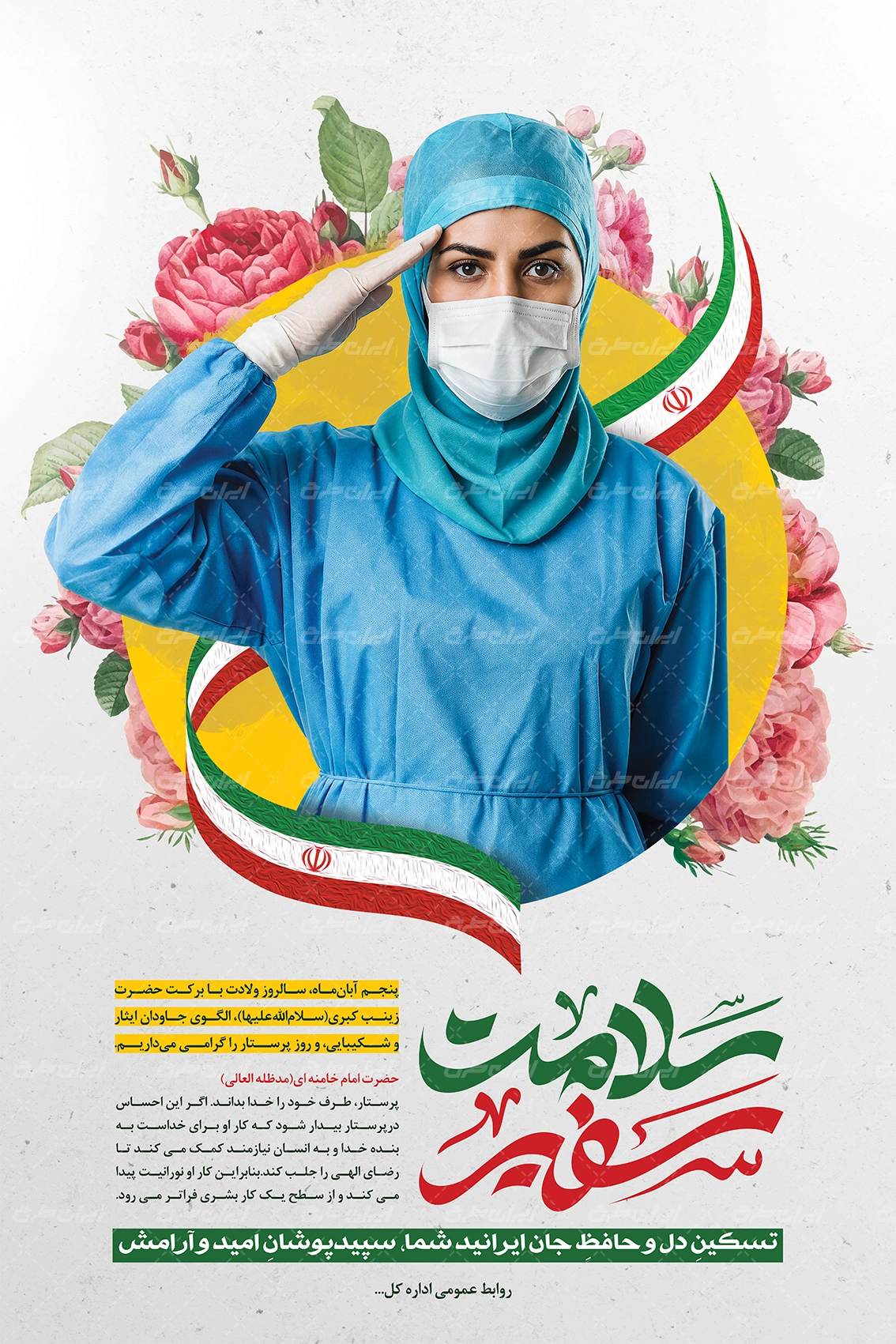 تایپوگرافی سفیر سلامت، تصویر پرستار و متن گرامیداشت روز پرستار می باشد که توسط تیم ایران طرح طراحی شده است.