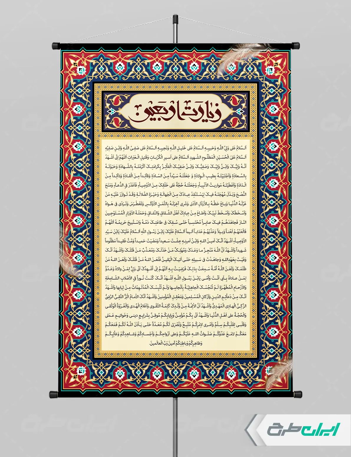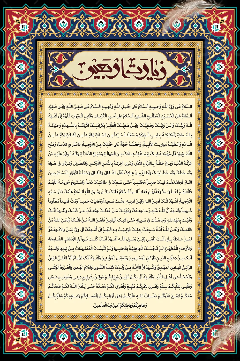 تذهیب و متن دعای اربعین میباشد که توسط طراحان ایران طرح در نرم افزار فتوشاپ طراحی شده است.