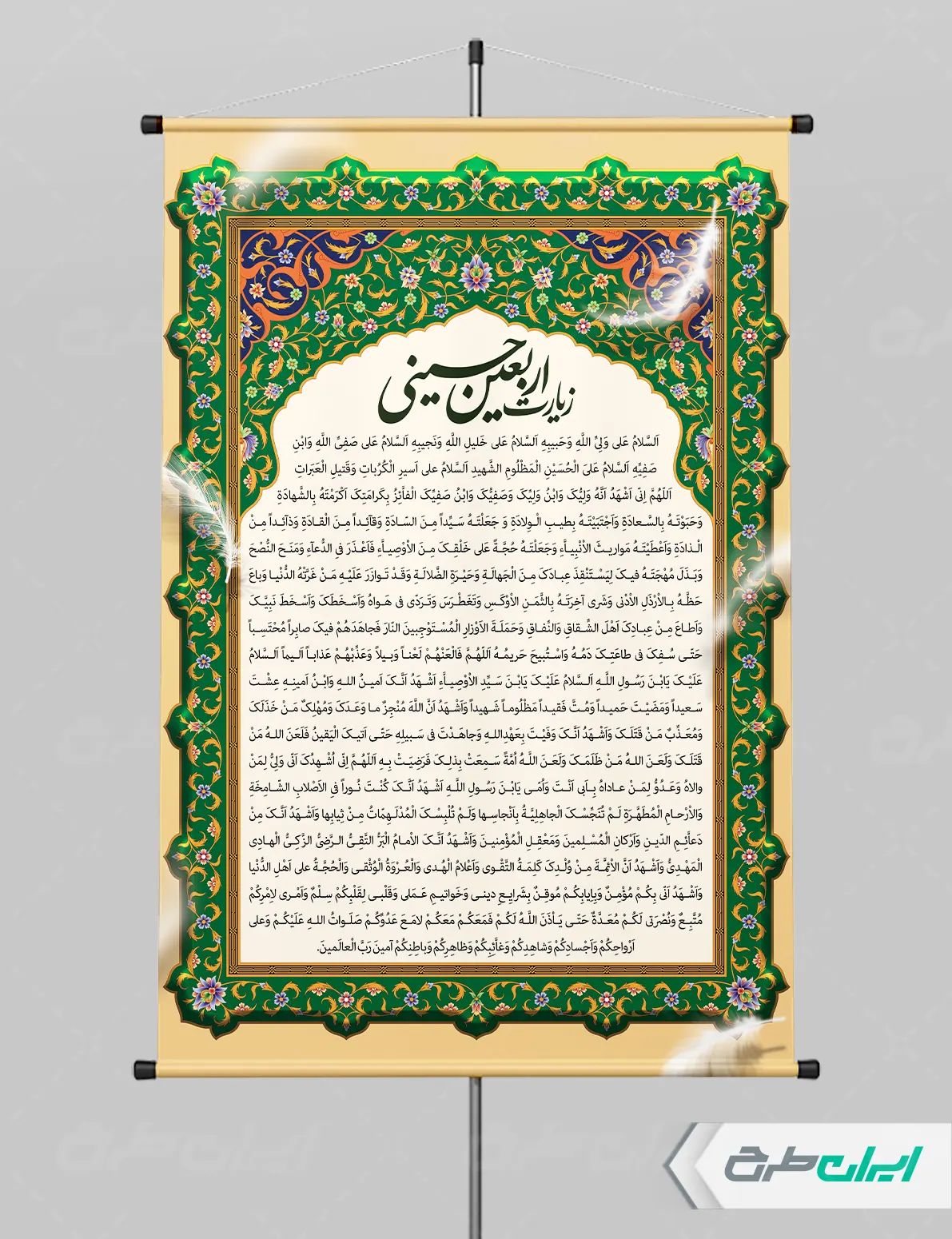 تذهیب و متن دعای اربعین میباشد که توسط طراحان ایران طرح در نرم افزار فتوشاپ طراحی شده است.
