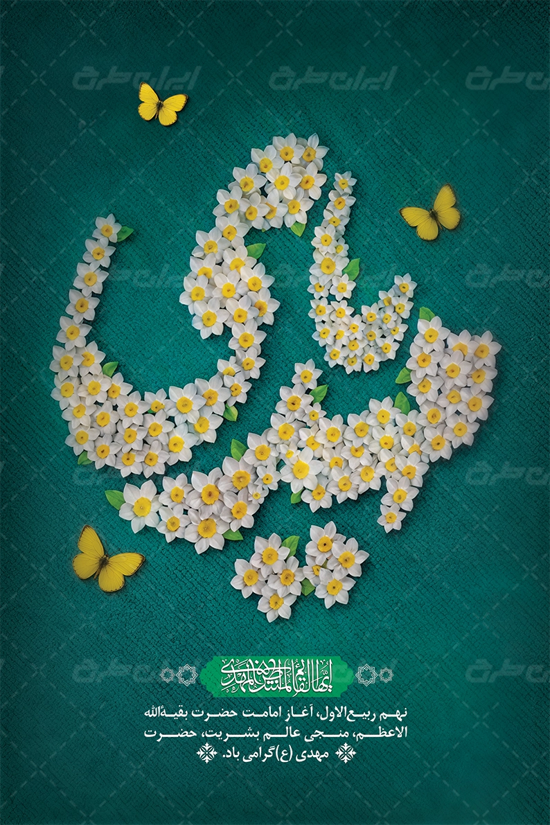 طرح پوستر آغاز امامت حضرت مهدی شامل: