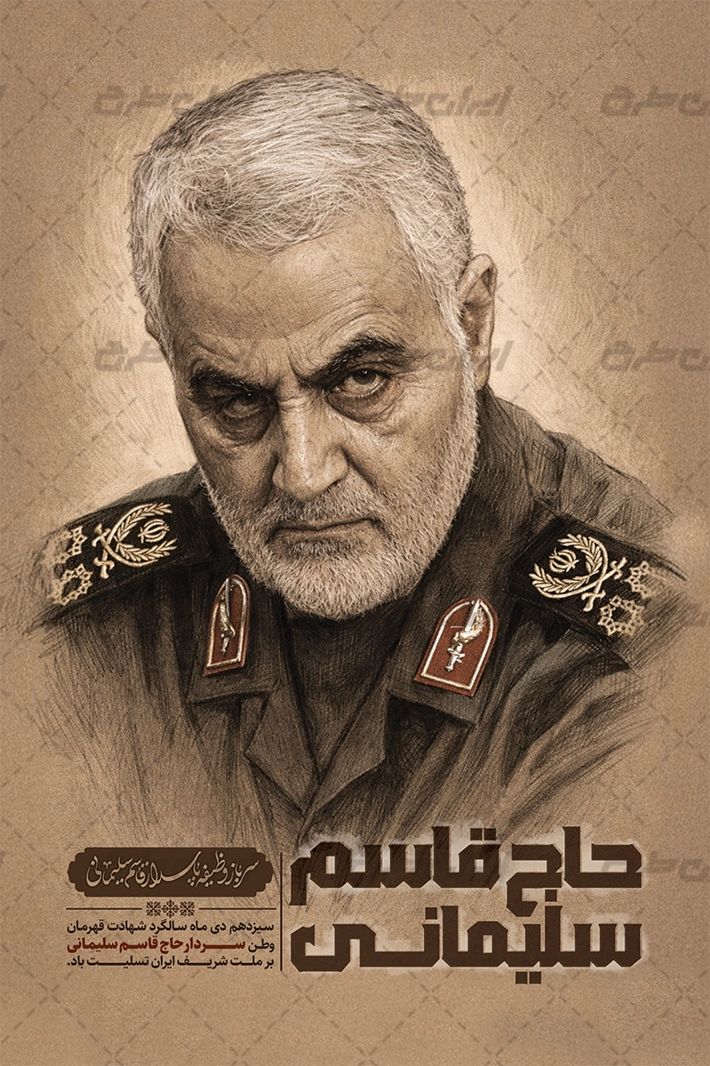 بنر شهادت سردار قاسم سلیمانی ، توسط تیم حرفه ای ایران طرح جهت استفاده کاربران سایت طراحی و به صورت لایه باز در دسترس کاربران قرار گرفته است.