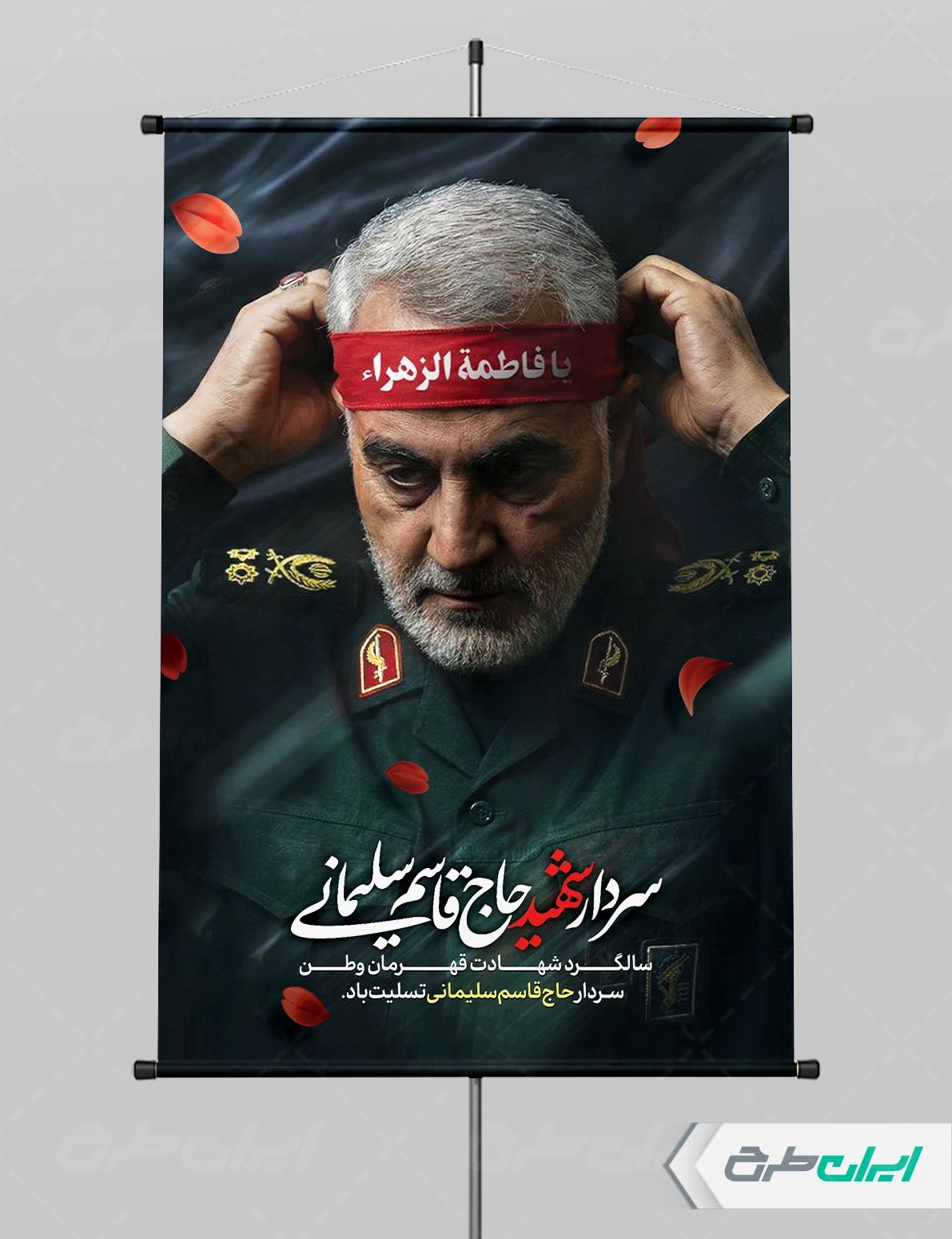 بنر شهادت سردار قاسم سلیمانی ، توسط تیم حرفه ای ایران طرح جهت استفاده کاربران سایت طراحی و به صورت لایه باز در دسترس کاربران قرار گرفته است.