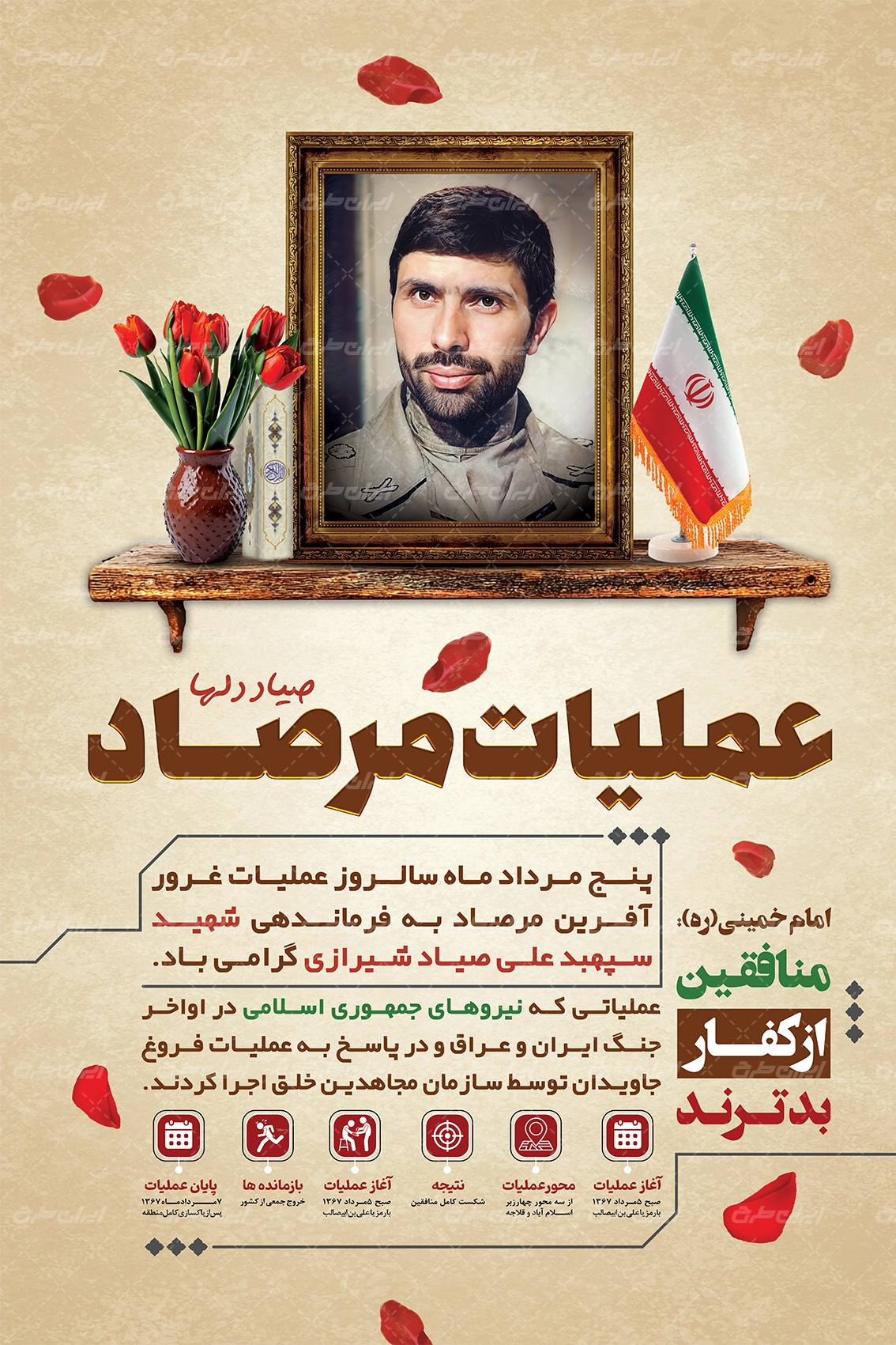 تصویر شهید صیاد شیرازی و متن مرتبط با روز عملیات مرصاد می باشد که توسط طراحان ایران طرح در نرم افزار فتوشاپ طراحی شده است.