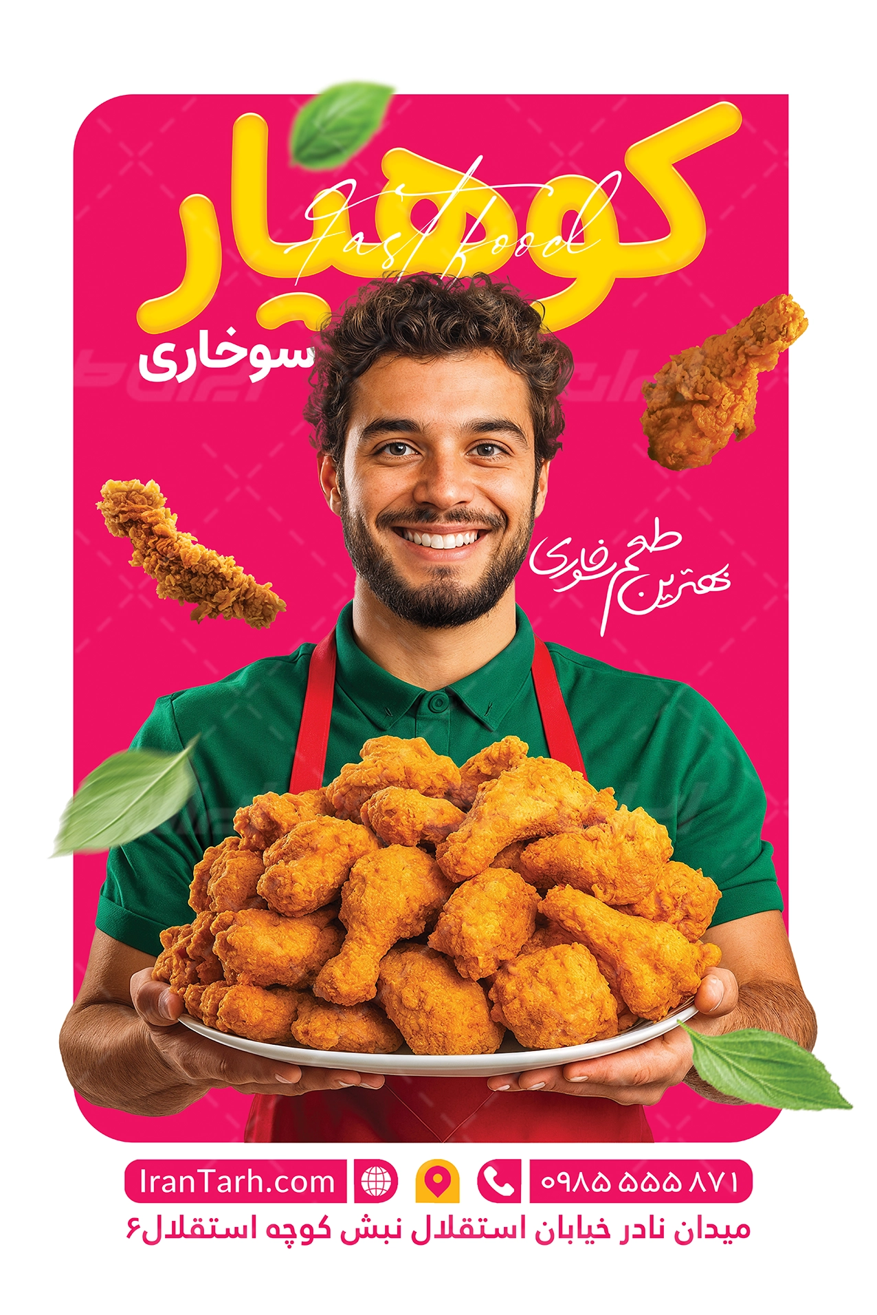 طراحی بنر برای فست فودی و سوخاری باید پویا، رنگارنگ و با تمرکز بر تصاویر غذاهای اشتهابرانگیز باشد. استفاده از فونتهای بزرگ و خوانا، پیامهای کوتاه و گیرا و تاکید بر کیفیت و طعم محصولات، احساس خوبی به مشتری منتقل میکند و او را به امتحان کردن غذاهای فروشگاه ترغیب مینماید. در نهایت، بنر باید به گونهای طراحی شود که برند فروشگاه در ذهن مخاطب ماندگار شود.