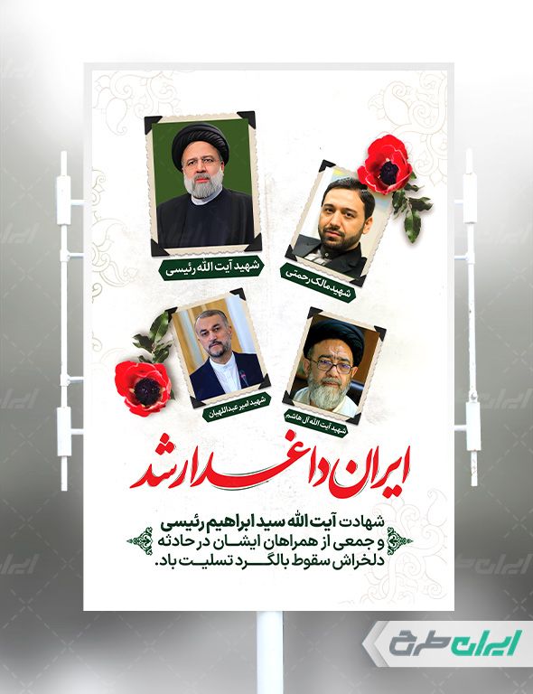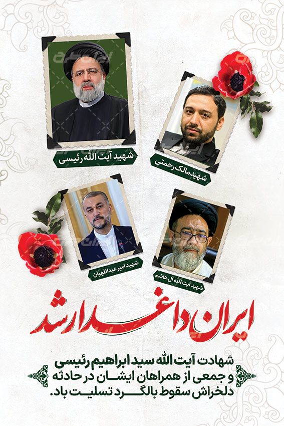 بنر تسلیت شهادت سید ابراهیم رئیسی، توسط تیم حرفه ای ایران طرح جهت استفاده کاربران سایت طراحی و به صورت لایه باز در دسترس کاربران قرار گرفته است.