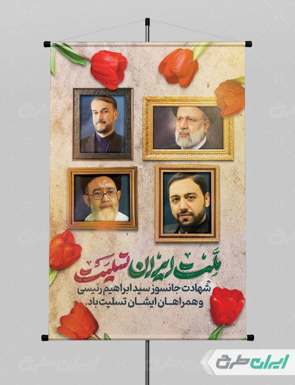بنر تسلیت شهادت سید ابراهیم رئیسی، توسط تیم حرفه ای ایران طرح جهت استفاده کاربران سایت طراحی و به صورت لایه باز در دسترس کاربران قرار گرفته است.