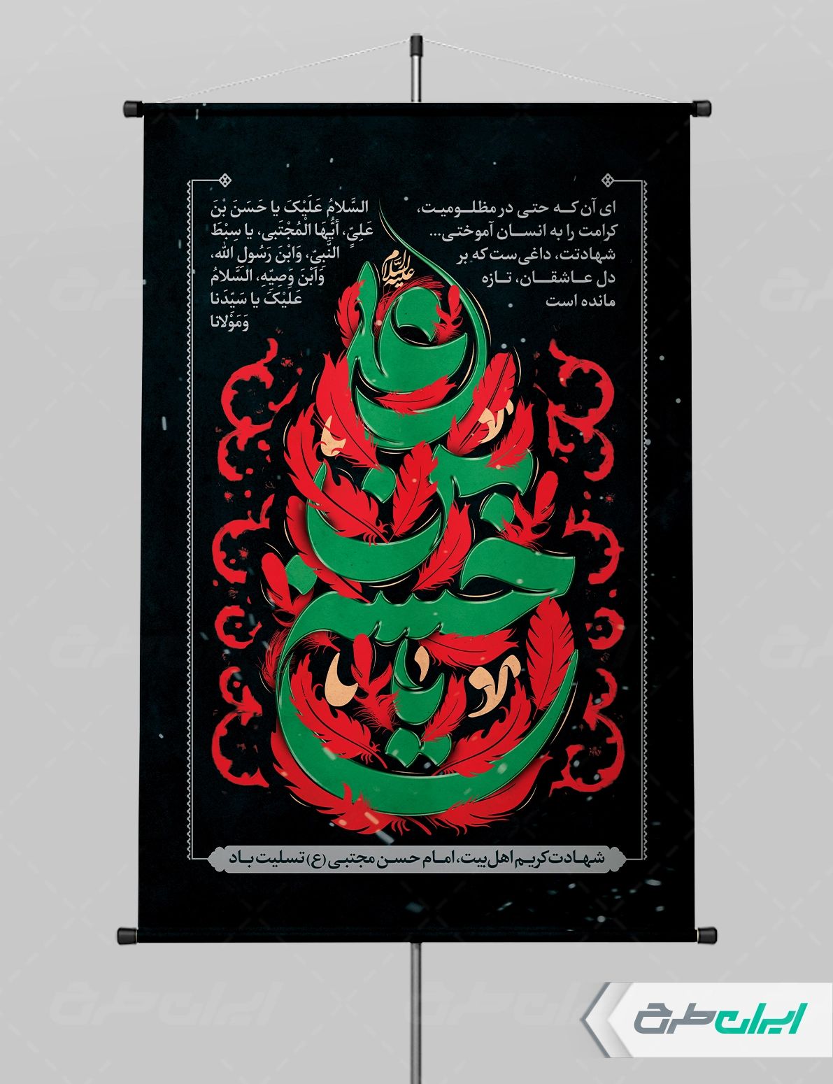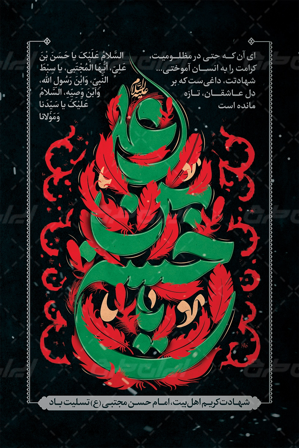 طرح پوستر شهادت امام حسن مجتبی (ع) شامل: