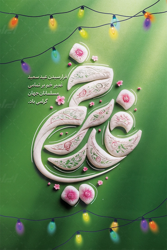 تایپوگرافی غدیر خم، طرح گل و متن تبریک عید غدیر خم می باشد که توسط طراحان ایران طرح در نرم افزار فتوشاپ طراحی شده است.