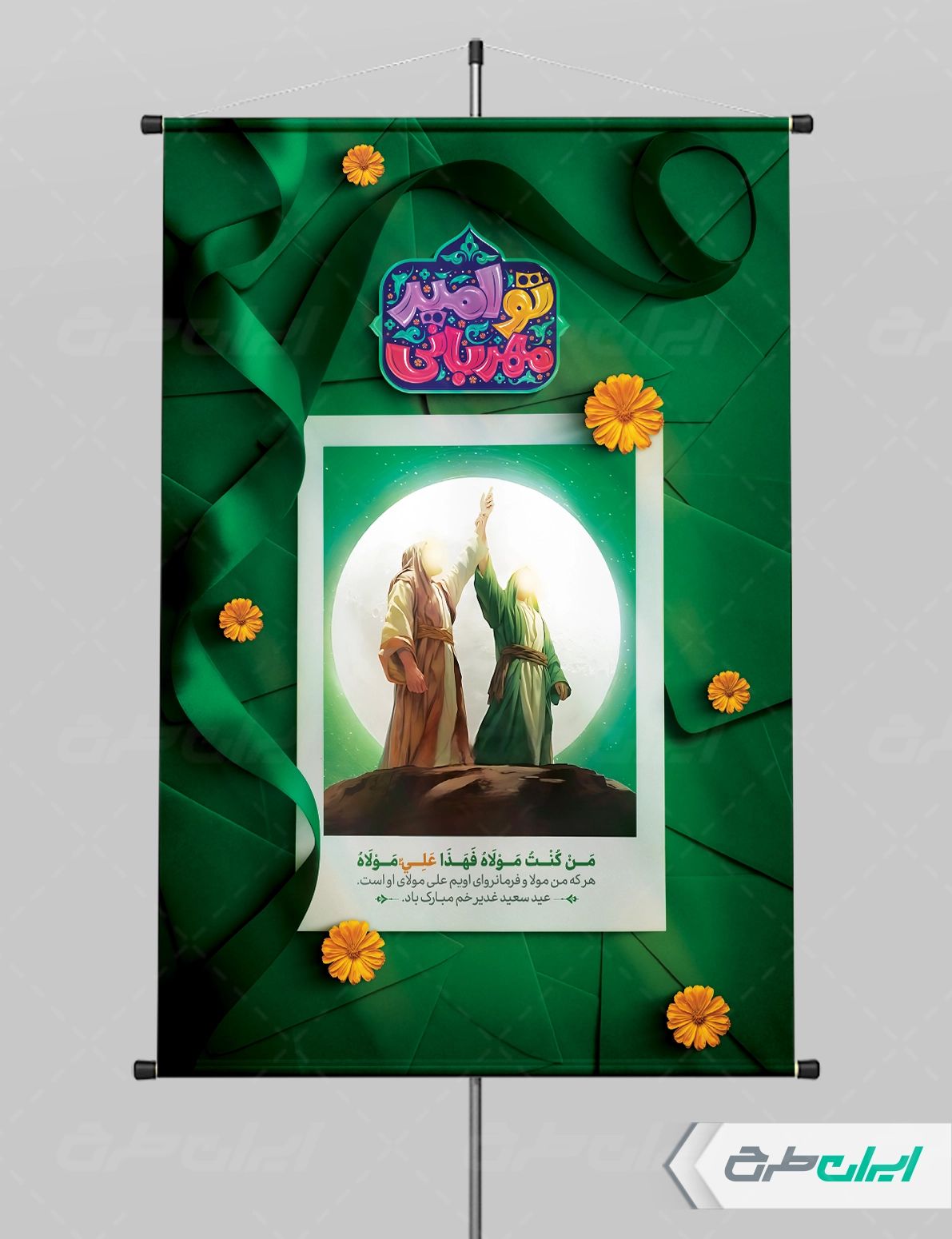 ضمنا به دلیل لایه باز بود طرح بنر عید غدیر می توانید با استفاده از نرم افزار فتوشاپ تغییرات دلخواه خود را اعمال کنید.