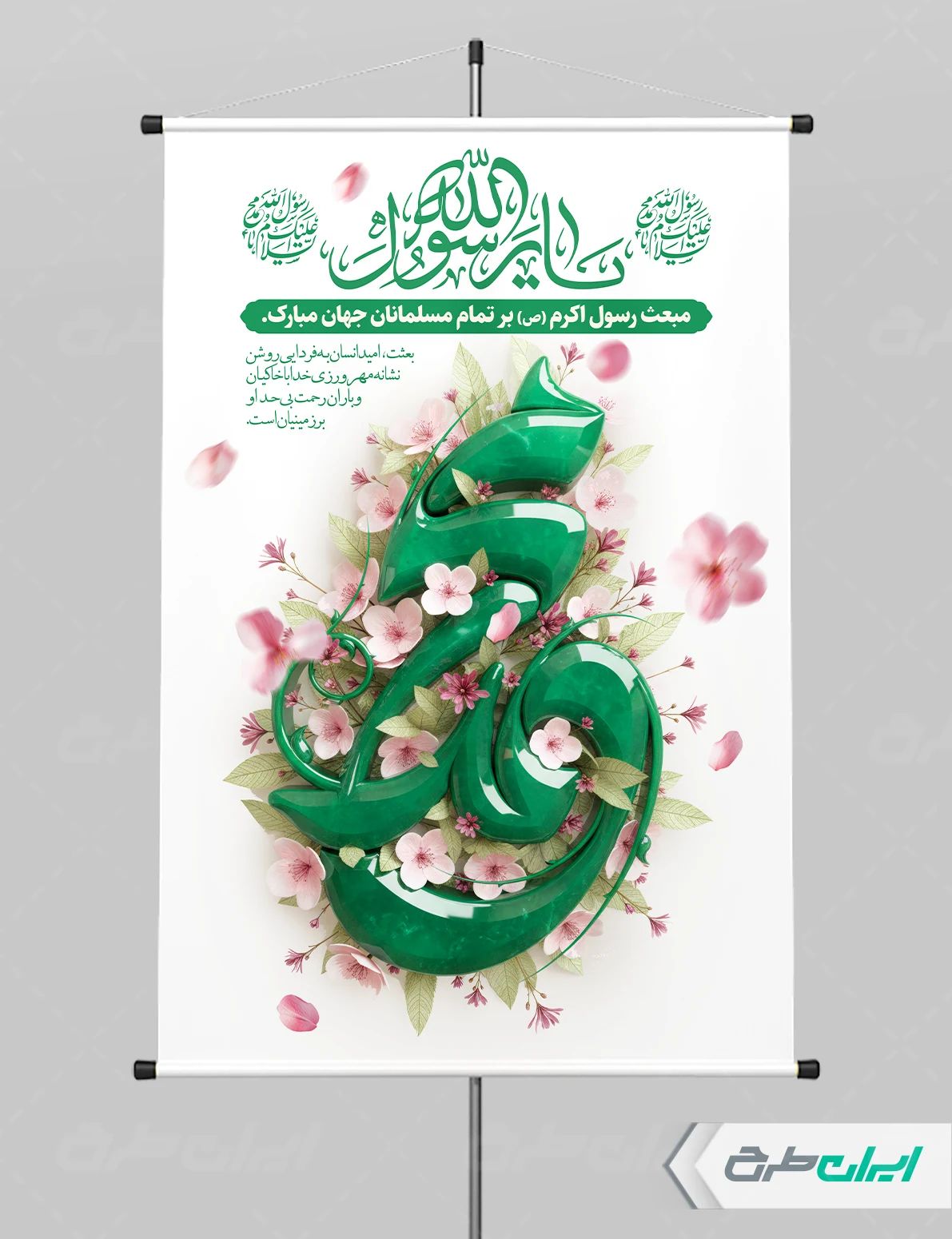 بنر عید مبعث، توسط تیم حرفه ای ایران طرح جهت استفاده کاربران سایت طراحی و به صورت لایه باز در دسترس کاربران قرار گرفته است.