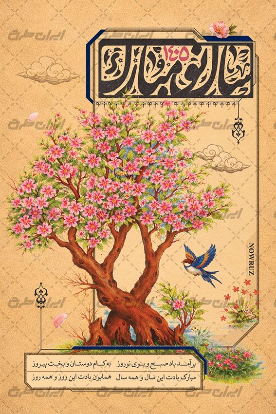 تصویر سبزه، تایپوگرافی سال نو مبارک و متن گرامیداشت عید نوروز می باشد که توسط تیم ایران طرح طراحی شده است.