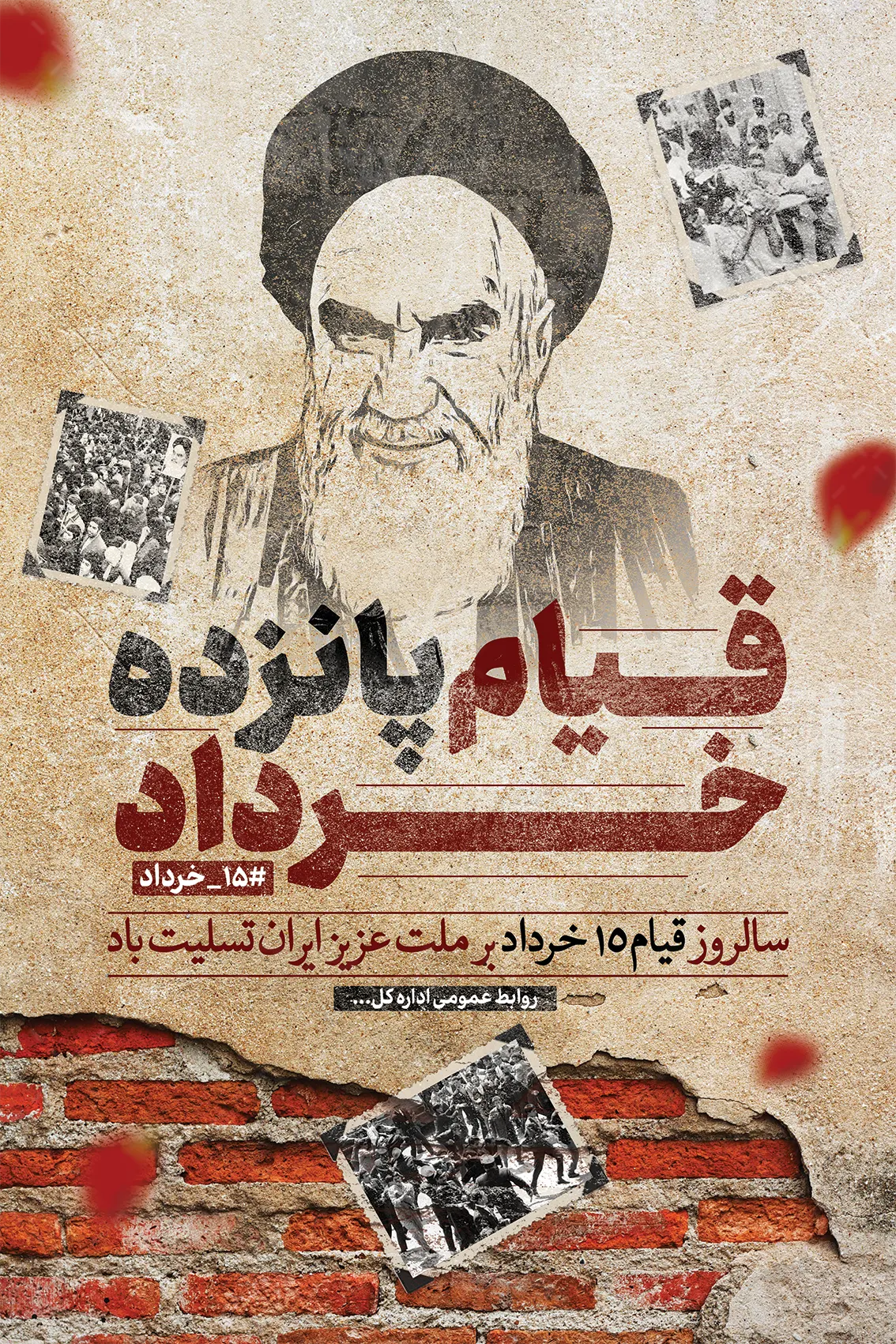 تصویر امام خمینی، متن گرامیداشت قیام 15 خرداد می باشد که توسط تیم ایران طرح طراحی شده است.