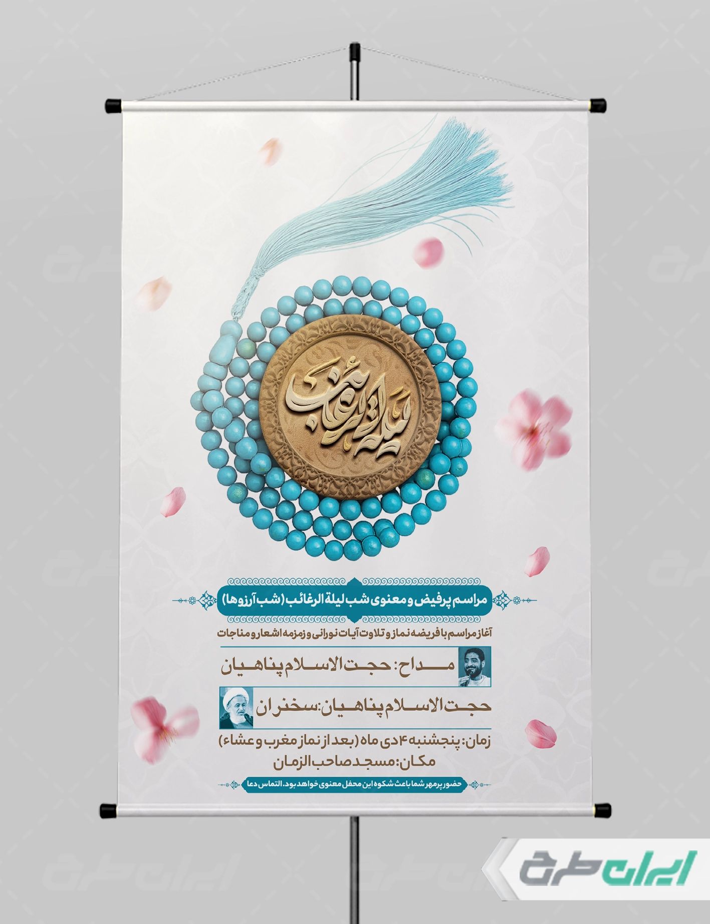 ضمنا به دلیل لایه باز بود طرح بنر ماه رجب می توانید با استفاده از نرم افزار فتوشاپ تغییرات دلخواه خود را اعمال کنید.