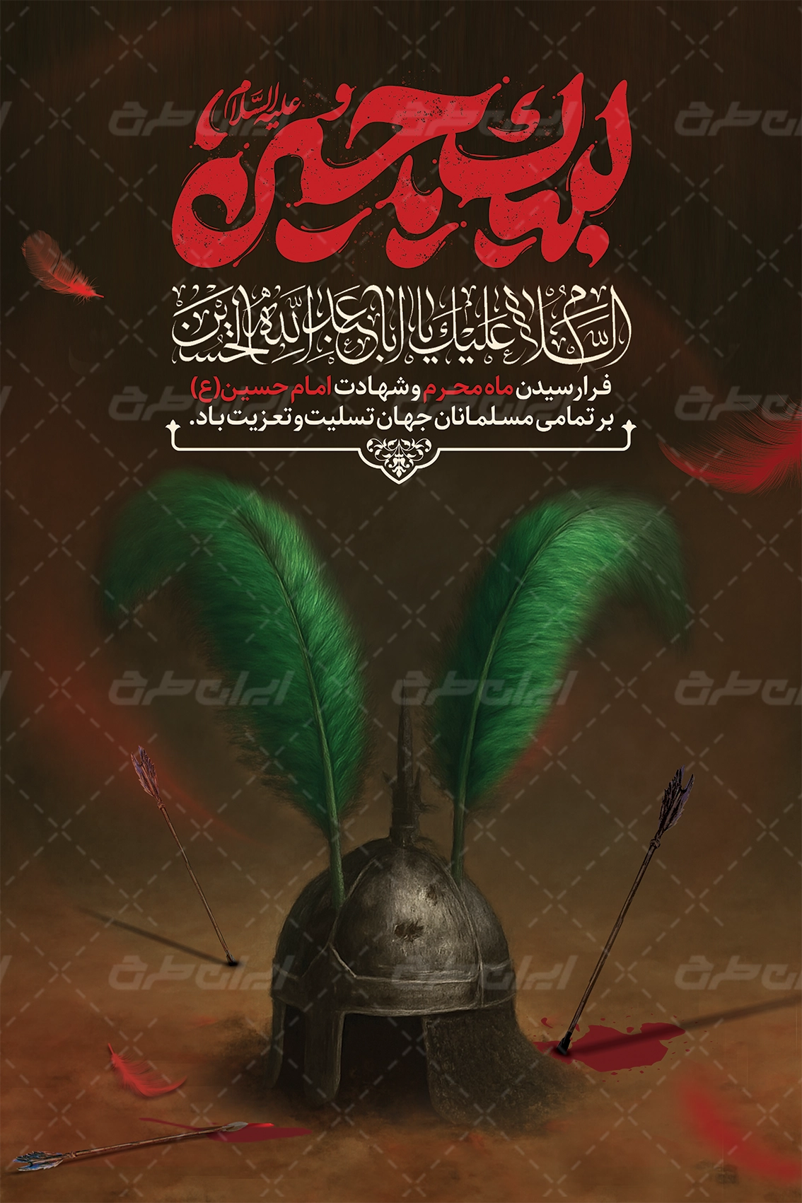 تایپوگرافی لبیک یا حسین و متن تسلیت ایام محرم می باشد که توسط طراحان ایران طرح در نرم افزار فتوشاپ طراحی شده است.