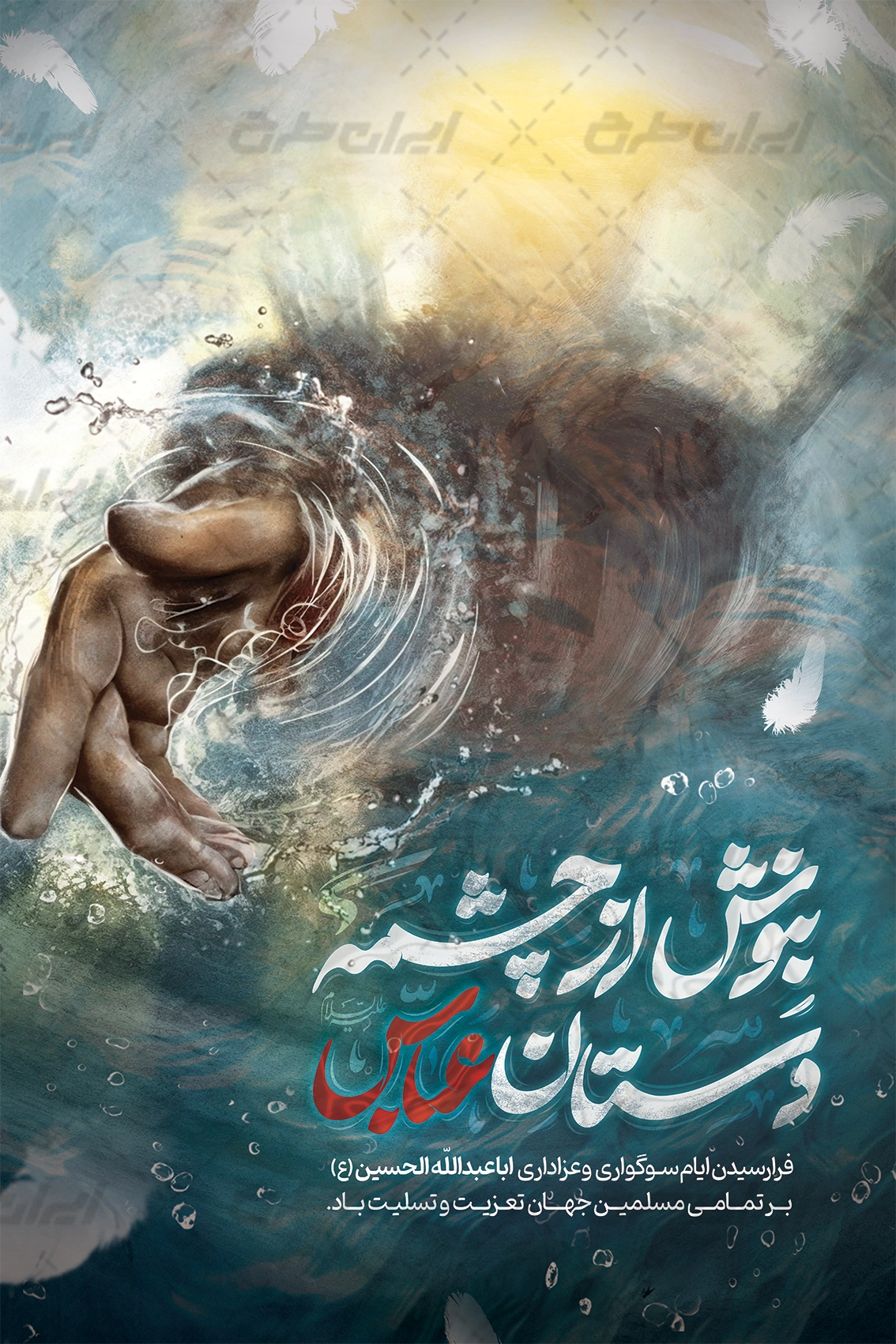 تایپوگرافی بنوش از چشمه دستان عباس، تصویر مرتبط و متن تسلیت ایام محرم می باشد که توسط طراحان ایران طرح در نرم افزار فتوشاپ طراحی شده است.