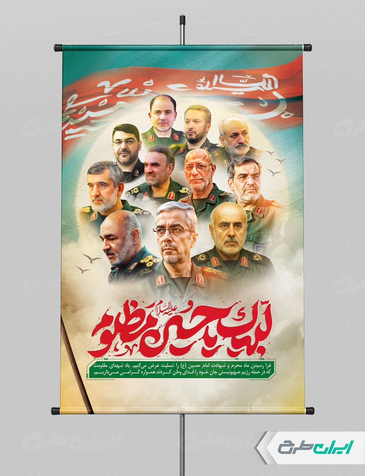 طرح پوستر محرم و شهادت سرداران سپاه در حمله اسرائیل