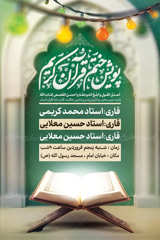 طرح بنر لایه باز محفل انس با قرآن، توسط تیم با تجربه ایران طرح جهت استفاده کاربران سایت طراحی و به صورت لایه باز در دسترس کاربران قرار گرفته است.