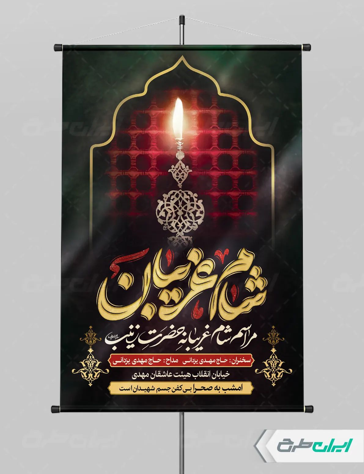 طرح لایه باز بنر مراسم شام غریبان، جهت استفاده مردم عزادار امام حسین (ع) طراحی و در دسترس کاربران سایت قرار گرفته است.