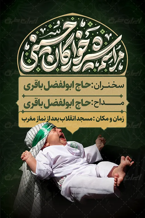 تایپوگرافی مراسم شیرخوارگان حسینی متن مرتبط در طرح بنر می باشد که توسط طراحان ایران طرح در نرم افزار فتوشاپ طراحی شده است.