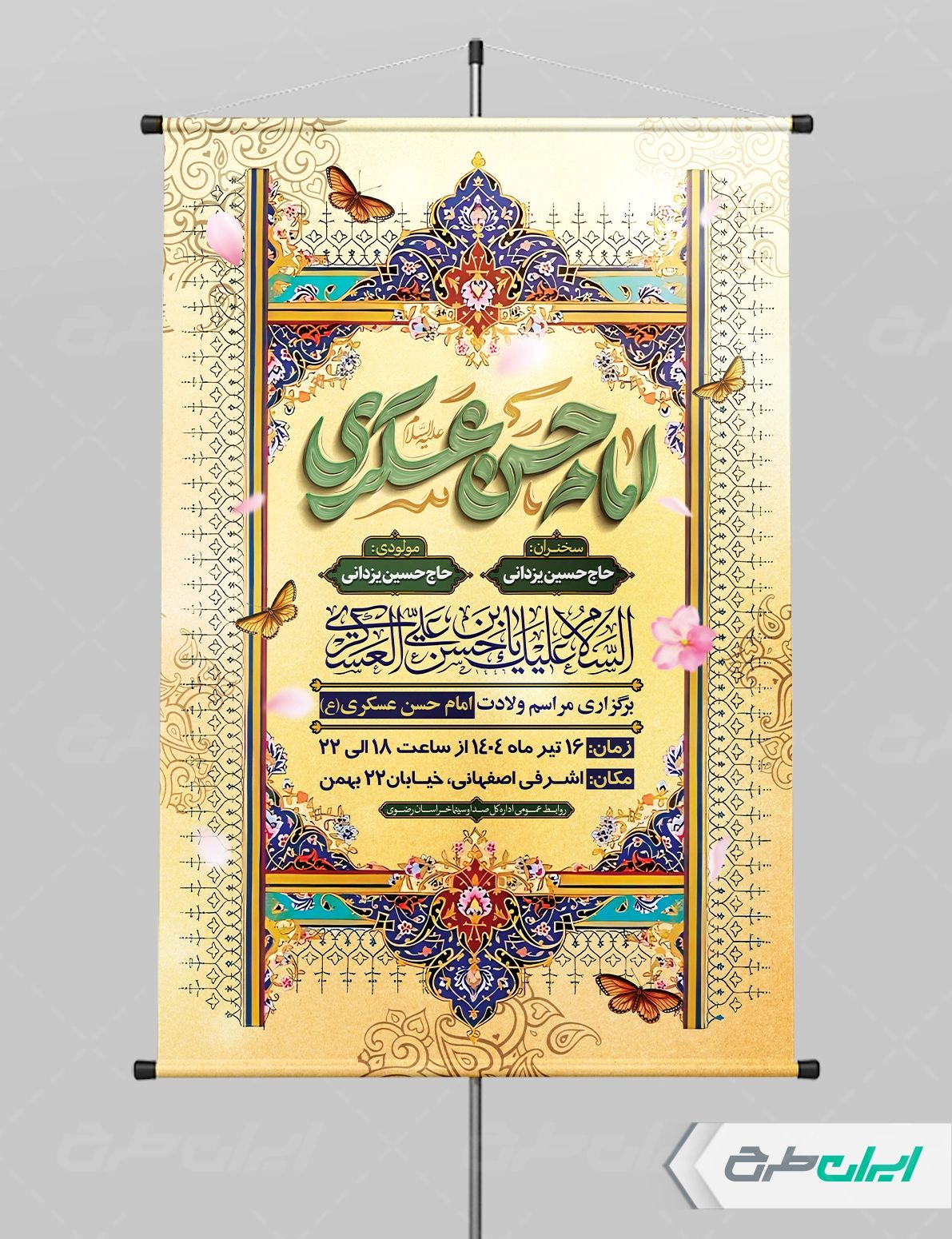 مشخصات فنی طرح بنر لایه باز ولادت امام حسن عسکری