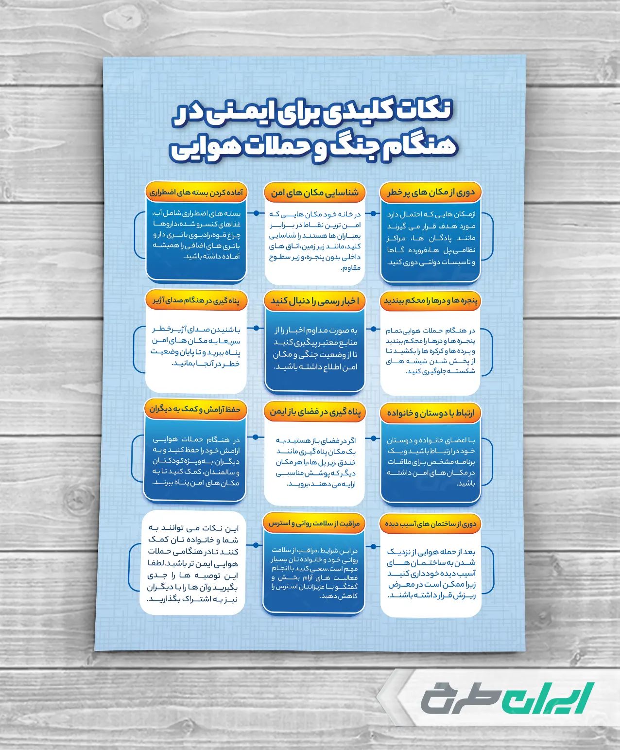 طرح بنر نکات عمومی شرایط جنگی توسط تیم ایران طرح طراحی و در دسترس کاربران سایت قرار گرفته است.