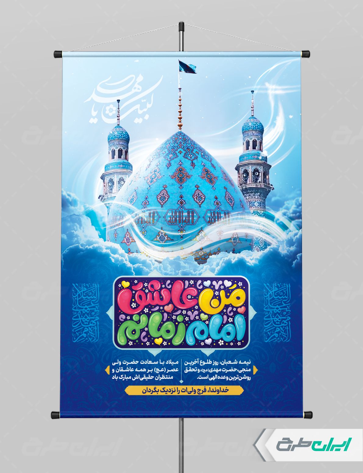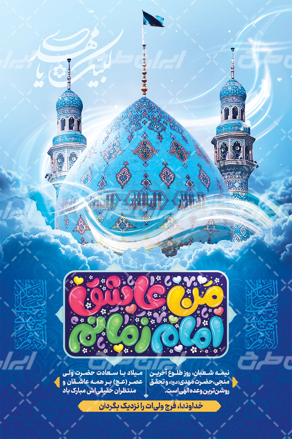 طرح پوستر نیمه شعبان با تایپوگرافی من عاشق امام زمانم