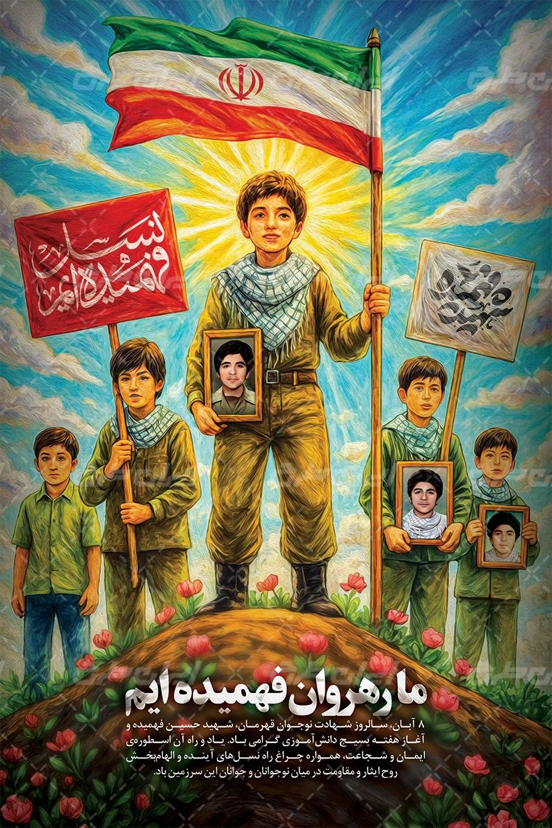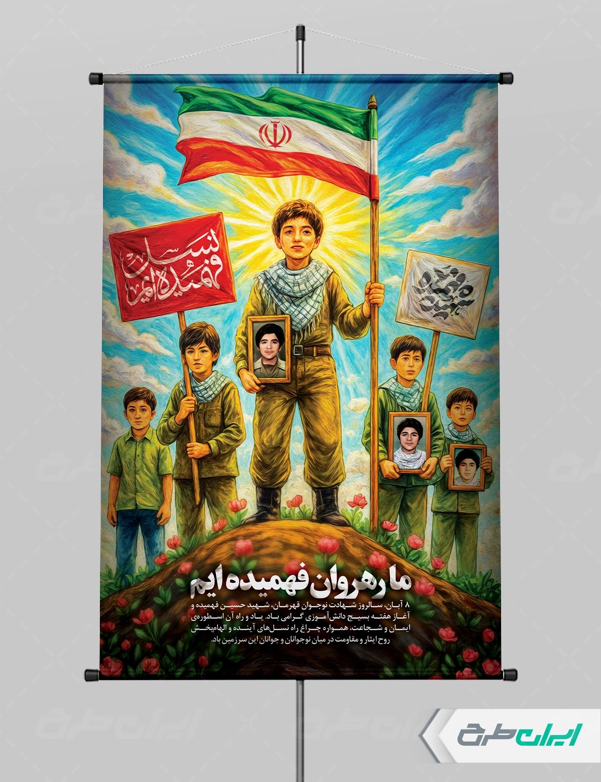تصویر شهید حسین فهمیده و متن گرامیداشت روز بسیج دانش آموزی می باشد که توسط تیم ایران طرح طراحی شده است.