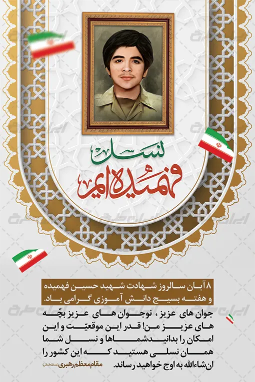 تصویر شهید حسین فهمیده و متن گرامیداشت روز بسیج دانش آموزی می باشد که توسط تیم ایران طرح طراحی شده است.