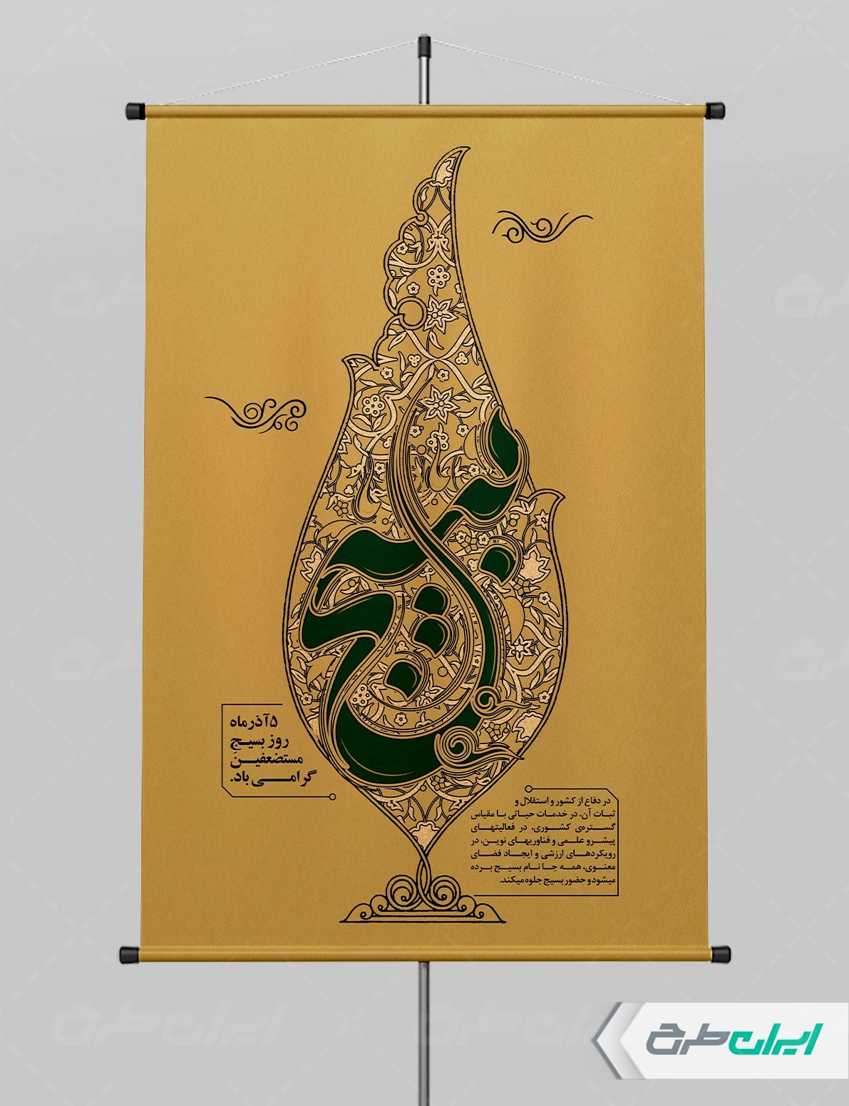 بنر لایه باز هفته بسیج، توسط تیم حرفه ای ایران طرح جهت استفاده کاربران سایت طراحی و به صورت لایه باز در دسترس کاربران قرار گرفته است.