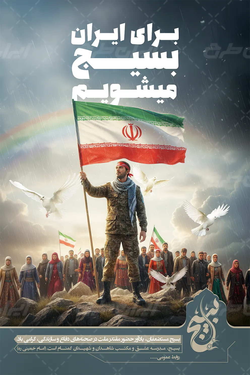 بنر لایه باز هفته بسیج، توسط تیم حرفه ای ایران طرح جهت استفاده کاربران سایت طراحی و به صورت لایه باز در دسترس کاربران قرار گرفته است.