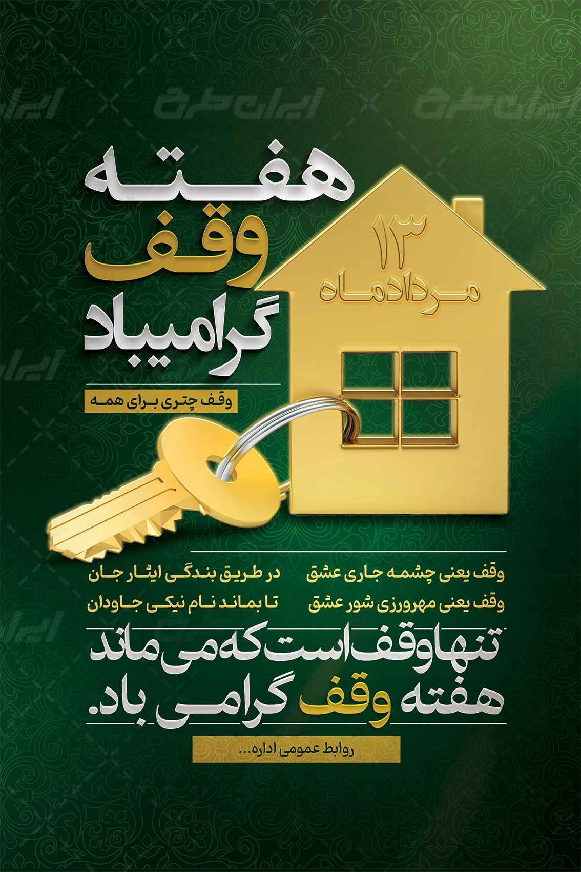 بنر لایه باز هفته وقف، توسط تیم با تجربه ایران طرح جهت استفاده کاربران سایت طراحی و به صورت لایه باز در دسترس کاربران قرار گرفته است.