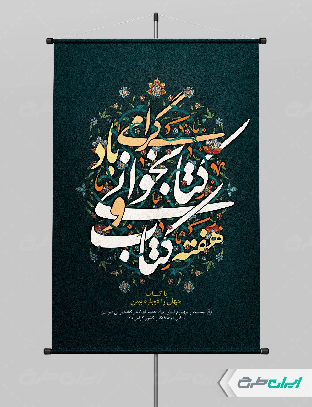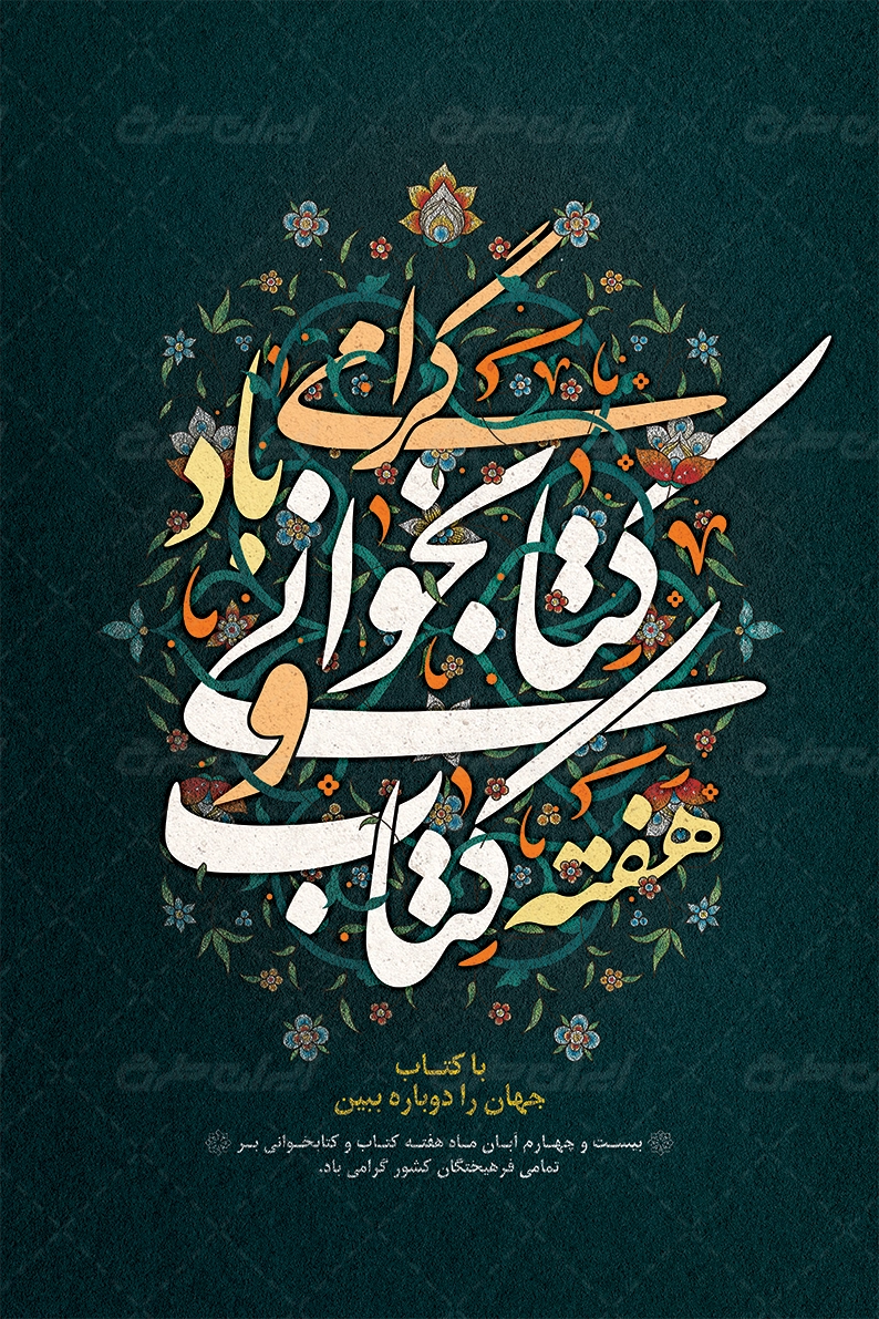 تصویر کتاب و متن گرامیداشت روز کتاب و کتابخوانی میباشد که توسط تیم خلاق ایران طرح طراحی شده است.