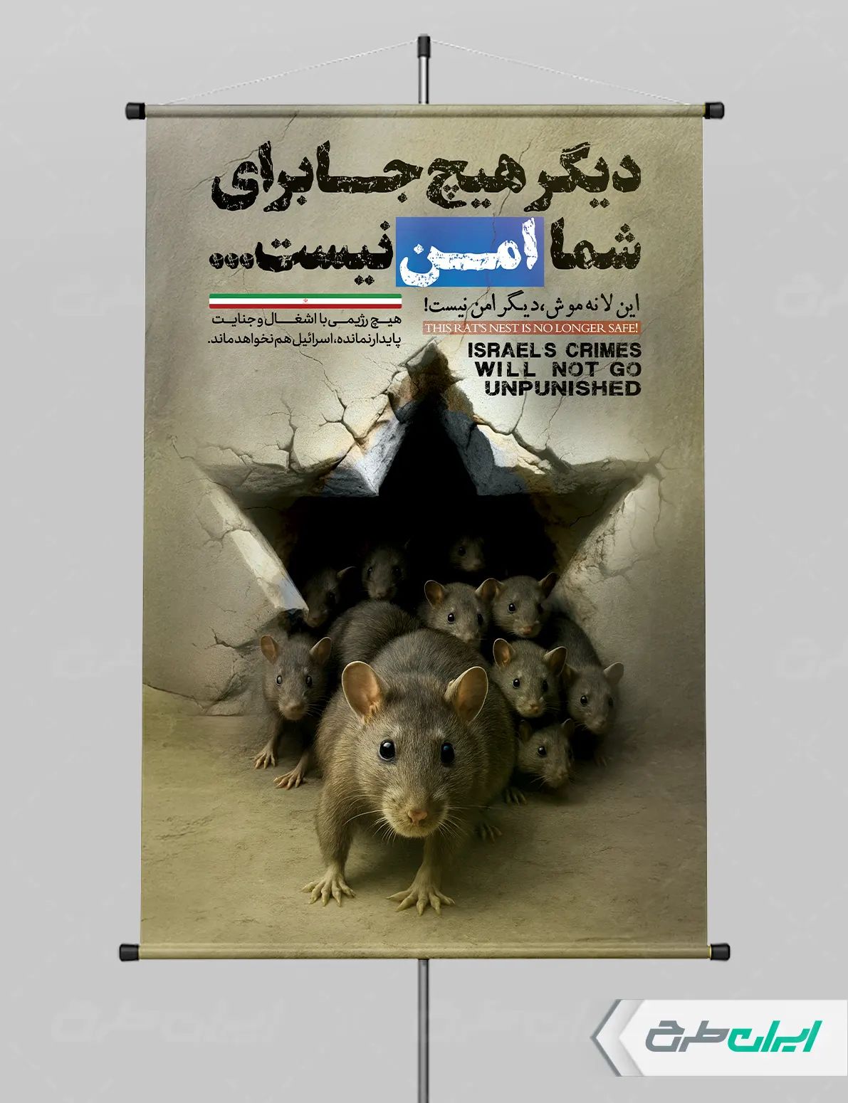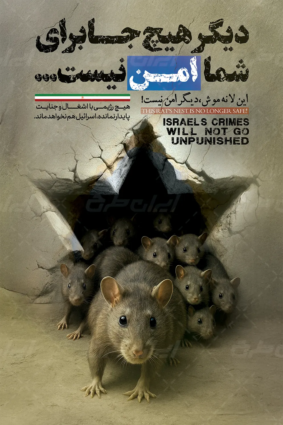 تصویر موش و متن مرتبط با این حمله موشکی است که توسط تیم خلاق ایران طرح طراحی شده است.