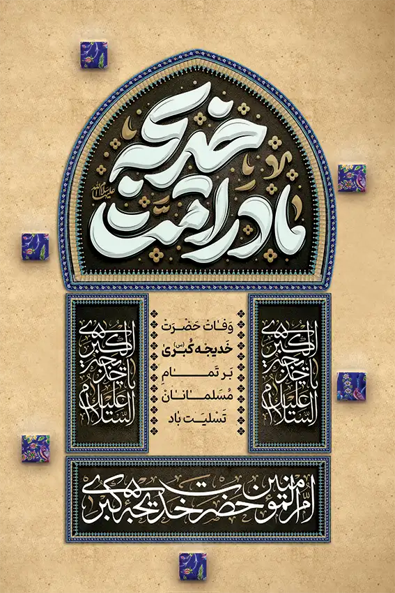 تایپوگرافی خدیجه مادر امت، تذهیب و نقوش مذهبی، متن تسلیت وفات حضرت خدیجه (س) می باشد که توسط تیم ایران طرح طراحی شده است.