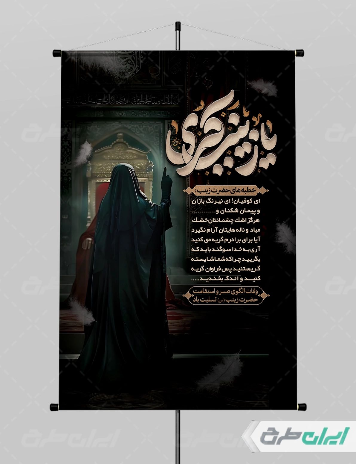 بنر وفات حضرت زینب (س)، توسط تیم حرفه ای ایران طرح جهت استفاده کاربران سایت طراحی و به صورت لایه باز در دسترس کاربران قرار گرفته است.