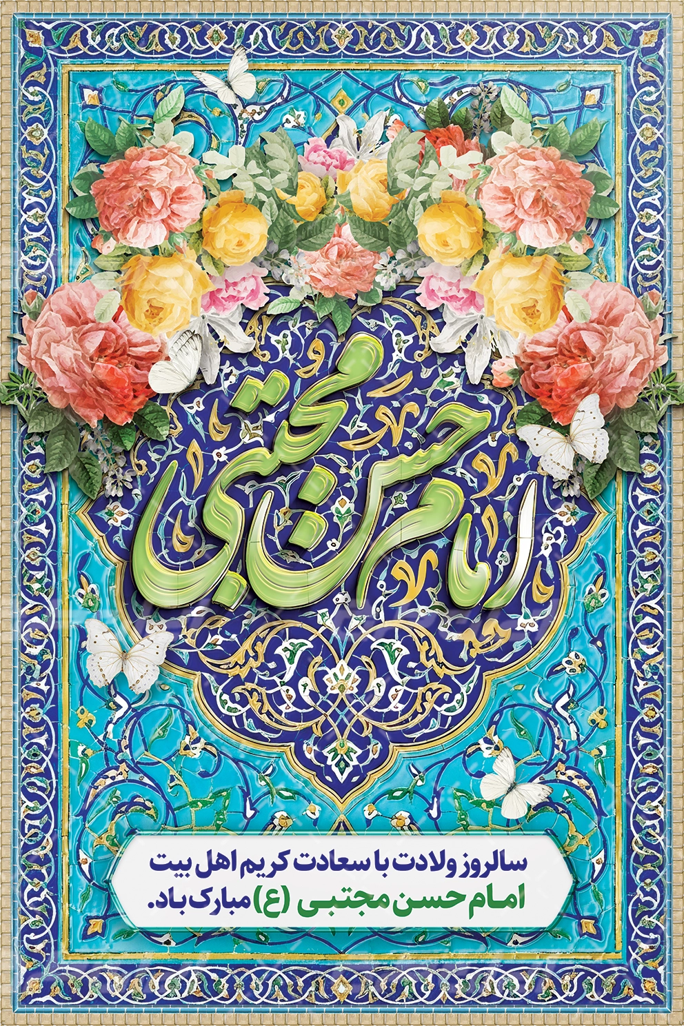 ولادت امام حسن مجتبی , امام حسن مجتبی , پوستر ولادت امام حسن مجتبی , ولادت امام حسن , بنر ولادت امام حسن , بنر لایه باز ولادت امام حسن , بنر ولادت امام حسن , یا حسن بن علی , امام حسن , بنر تولد امام حسن , تذهیب ,