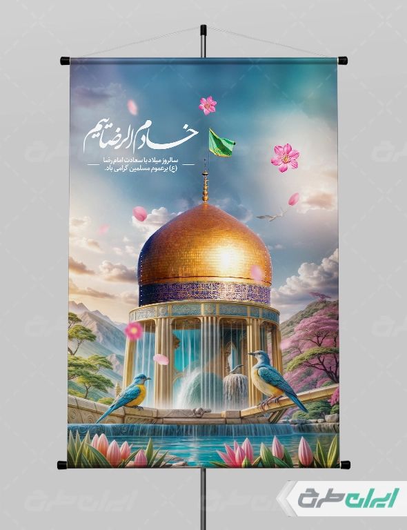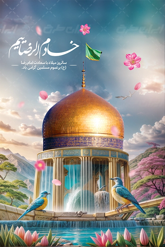تصویر حرم و متن گرامیداشت ولادت امام رضا (ع) می باشد که توسط تیم ایران طرح طراحی شده است.
