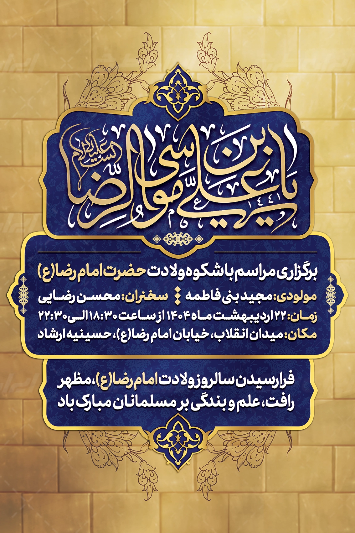 ولادت امام علی بن موسیالرضا (ع) یکی از بزرگترین مناسبتها در تاریخ اسلام است که در تقویم شیعیان بهویژه در ایران با شکوه خاصی گرامی داشته میشود. امام رضا (ع) هشتمین امام شیعیان، بهخاطر علم، تقوا، مهربانی و ایثارهای فراوانش شناخته میشود و ولادت ایشان فرصتی برای یادآوری جایگاه ویژه ایشان در تاریخ اسلام است. این روز در شهرهای مختلف ایران، بهویژه در مشهد مقدس که حرم امام رضا (ع) در آن قرار دارد، با برگزاری مراسمهای مذهبی، فرهنگی و جشنها همراه است. مردم در این ایام بهویژه با یادآوری آموزههای امام رضا (ع)، به بزرگداشت سیره ایشان میپردازند.