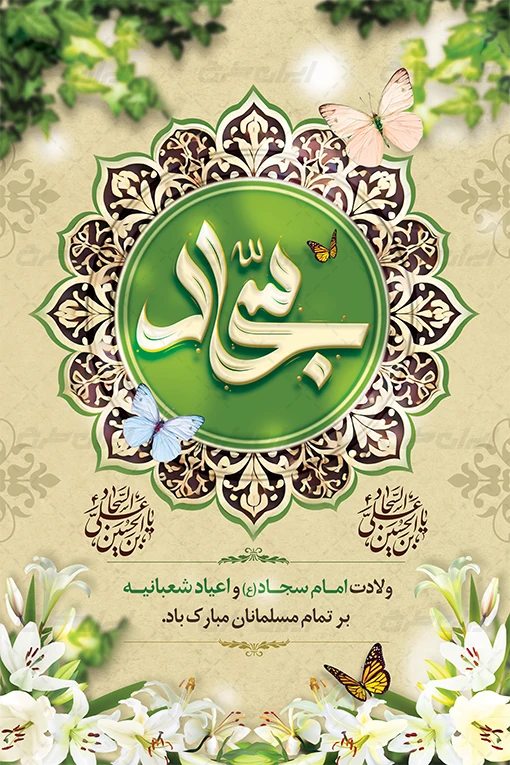بنر لایه باز ولادت امام سجاد (ع) ، توسط تیم حرفه ای ایران طرح جهت استفاده کاربران سایت طراحی و به صورت لایه باز در دسترس کاربران قرار گرفته است.
