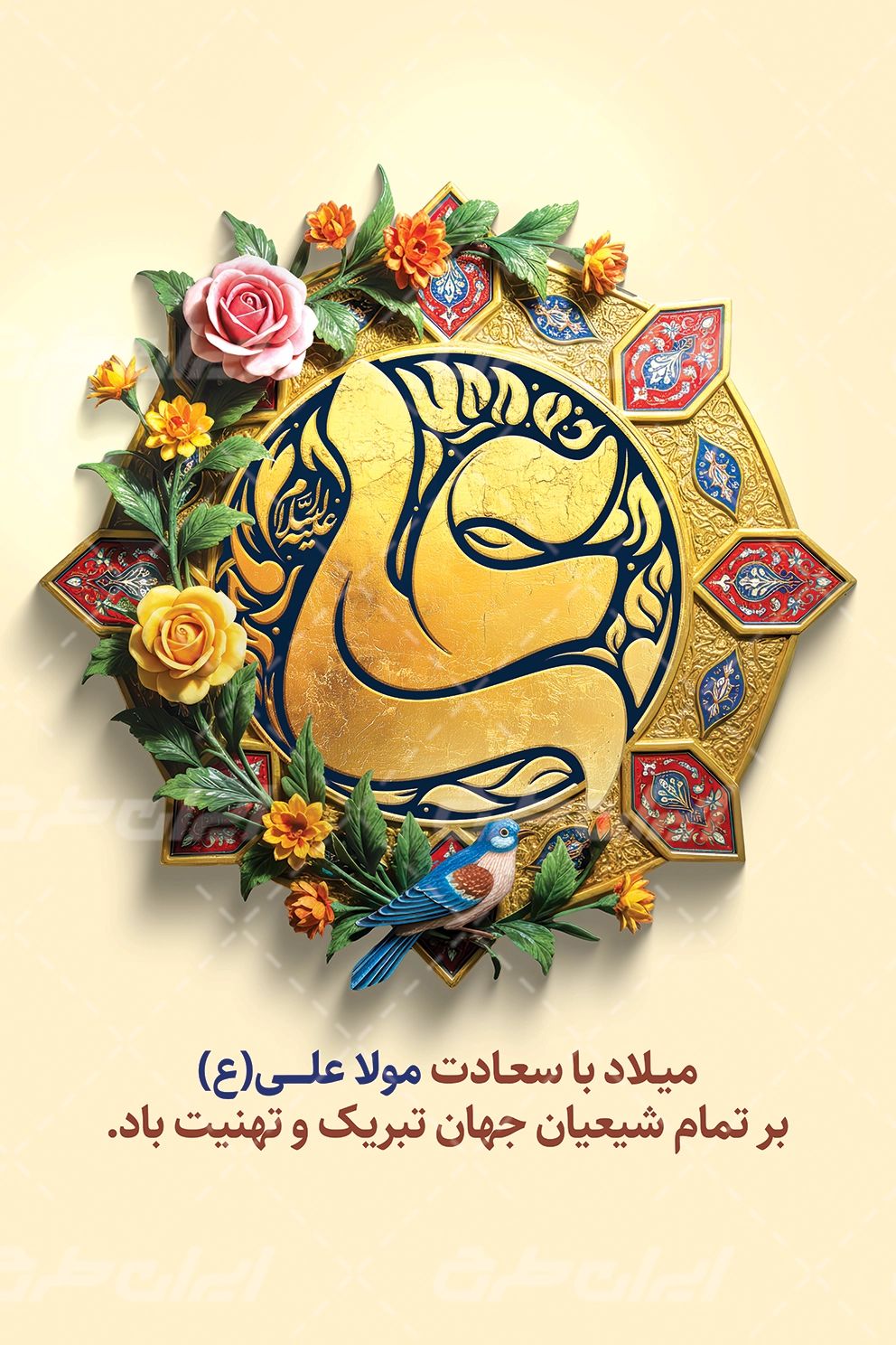 تایپوگرافی علی، تذهیب و متن تبریک روز پدر و ولادت امام علی (ع ) می باشد که توسط تیم ایران طرح طراحی شده است.