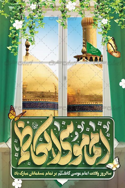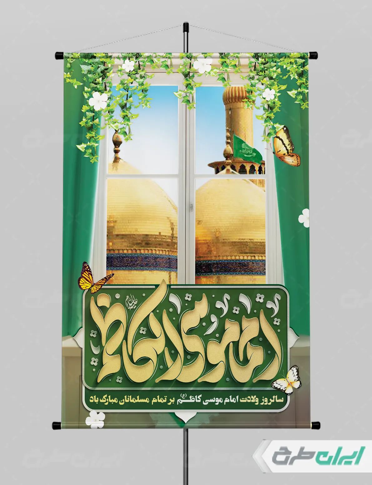 طرح بنر ولادت امام موسی کاظم (ع) شامل: