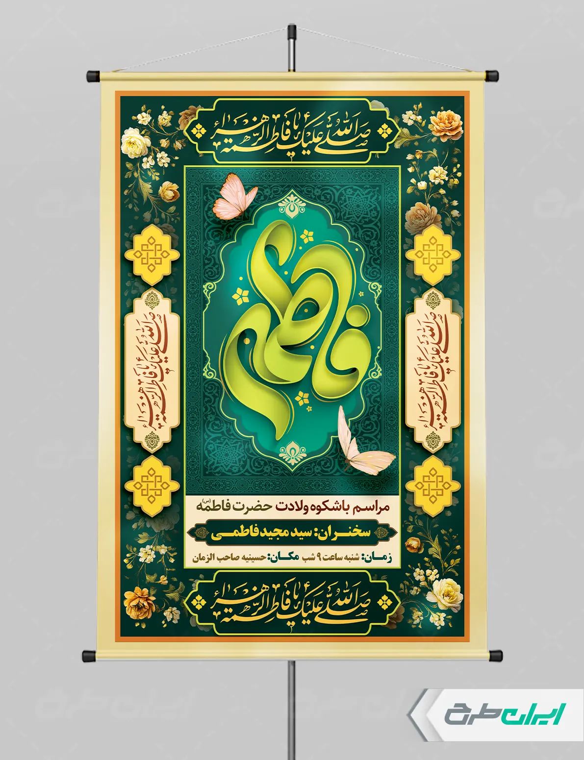 مشخصات فنی طرح بنر لایه باز میلاد حضرت فاطمه زهرا (س)