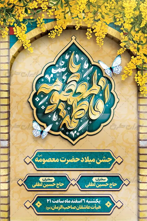 طرح بنر ولادت حضرت معصومه (س) شامل: