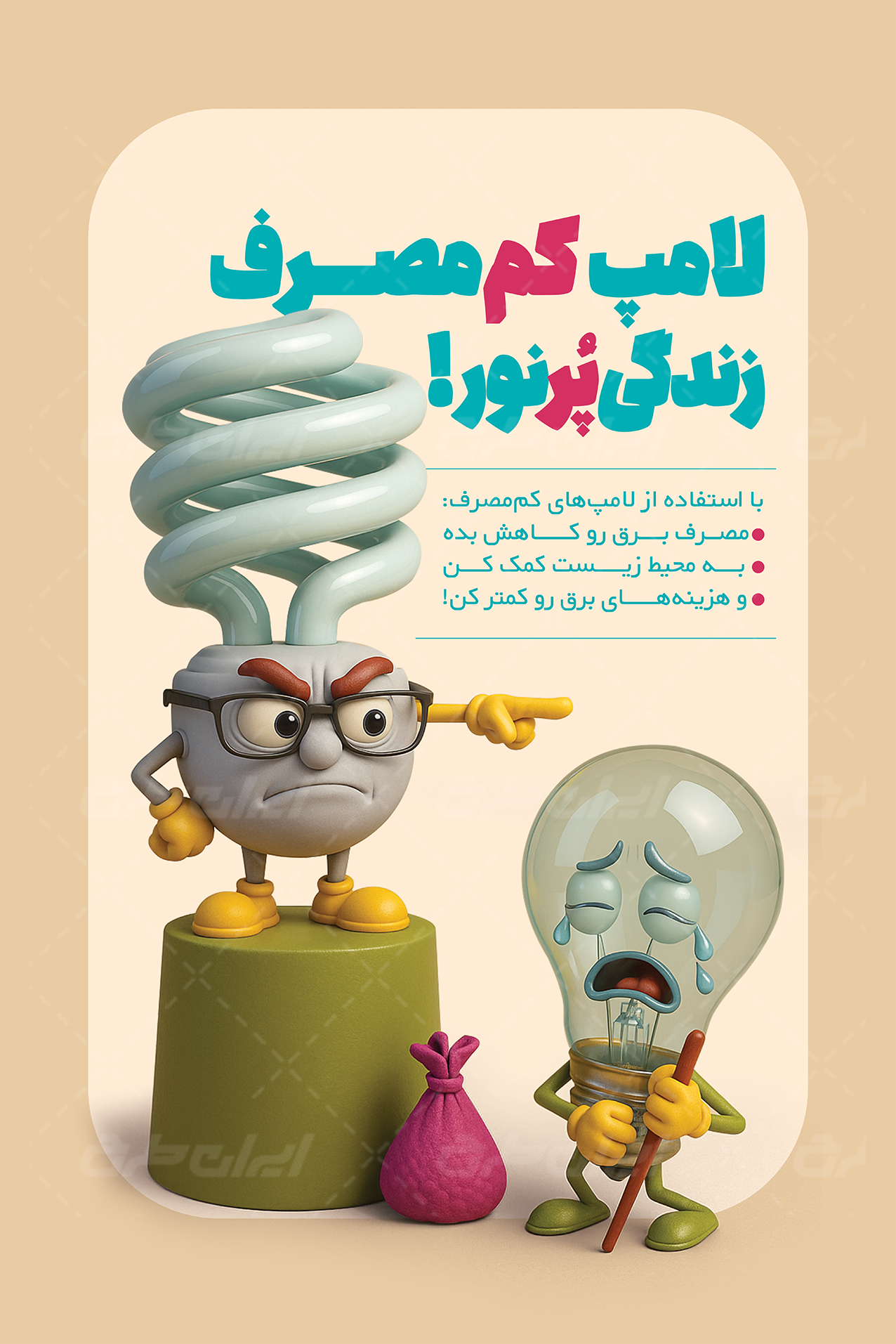 طرح پوستر پیام شهروندی صرفه جویی مصرف برق