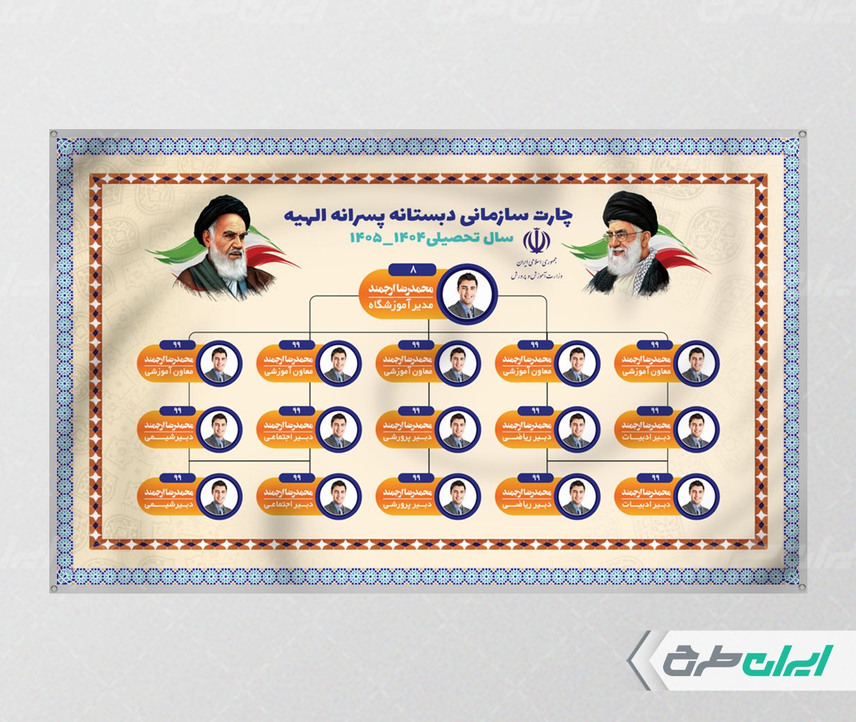 مشخصات فنی طرح بنر لایه باز چارت سازمانی دبستان
