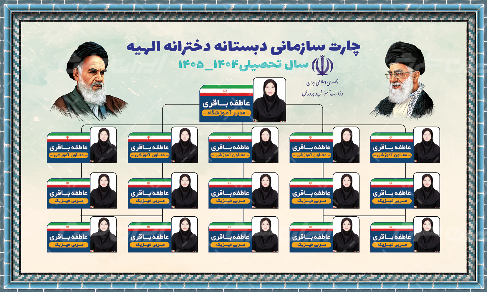 عکس ایت الله خامنه ای و امام خمینی (ره)، طرح چارت سازمانی دبستان مدرسه میباشد که توسط طراحان ایران طرح در نرم افزار فتوشاپ طراحی شده است.